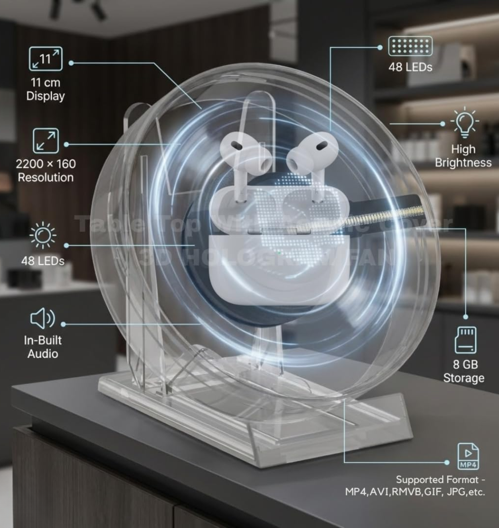 ✔ Compact mini holographic display for small spaces