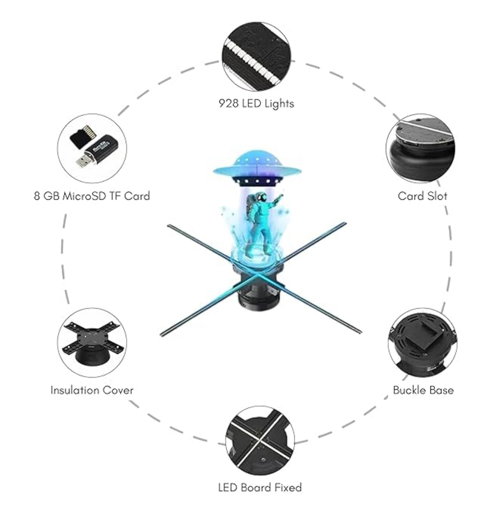 The 80 cm Hologram Fan Display is a high-impact 3D holographic advertising solution designed for large commercial environments where maximum visual attention is required. Using high-speed rotating LED technology, the system creates floating 3D holographic visuals that appear suspended in mid-air, visible without any special glasses.