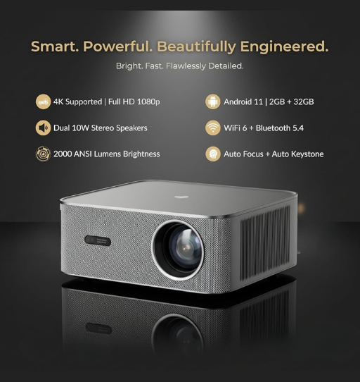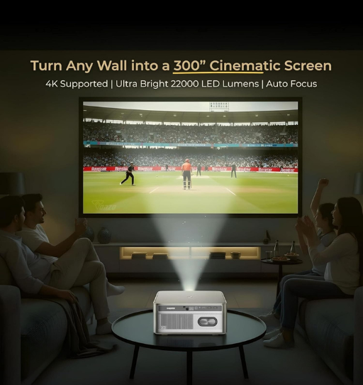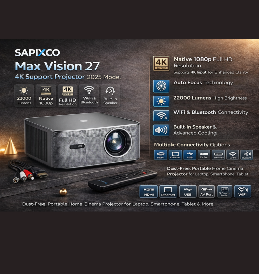 Upgrade your entertainment experience with the SAPIXCO Max Vision 27 4K Support Projector (2025 Model). Designed for home cinema lovers and professionals, this projector delivers stunning Full HD clarity with 22000 lumens brightness and 5000:1 contrast ratio for sharp, vibrant visuals.