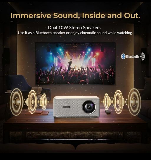 Its compact and portable design makes it ideal for home, office, gaming, and outdoor movie nights.