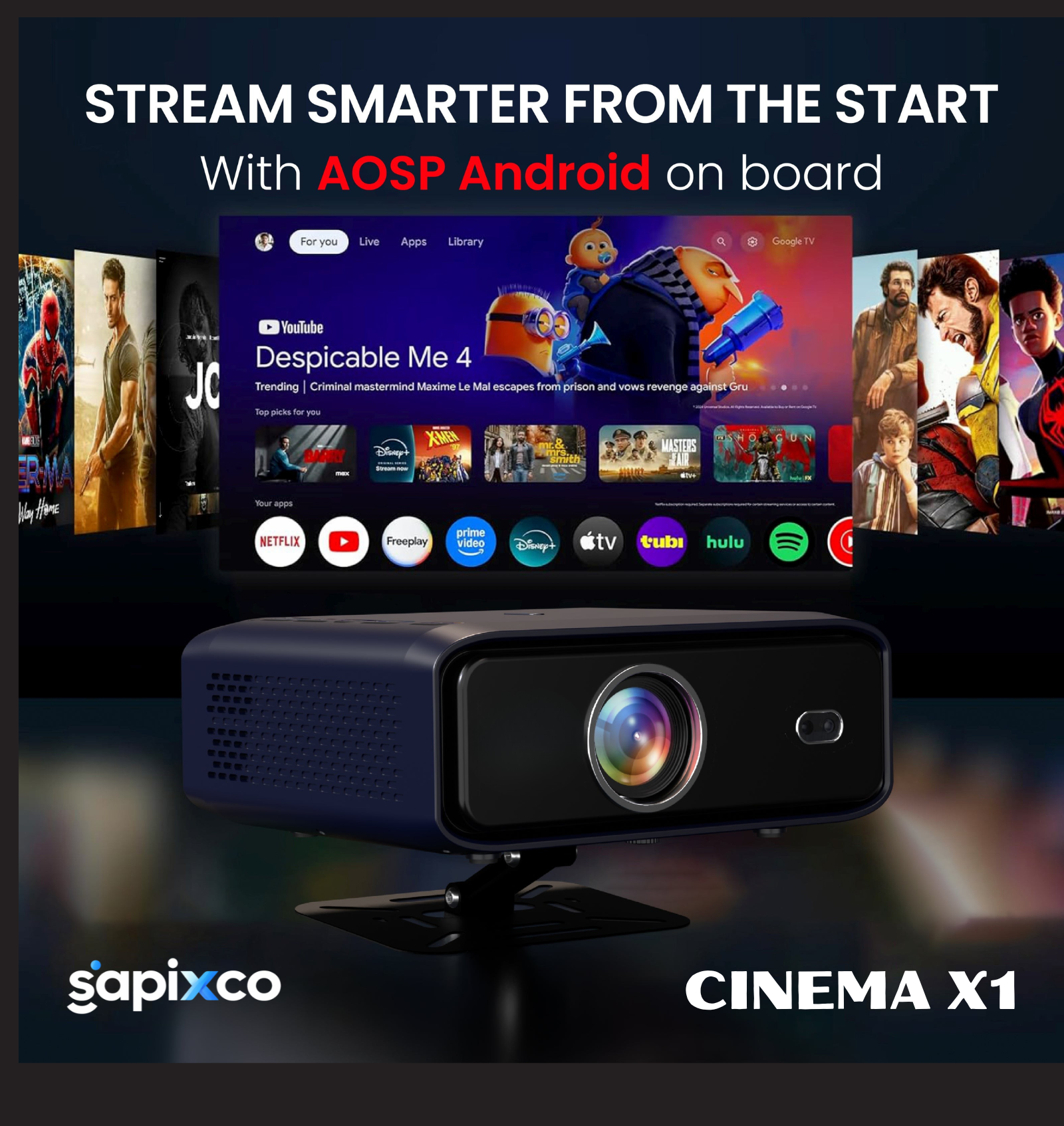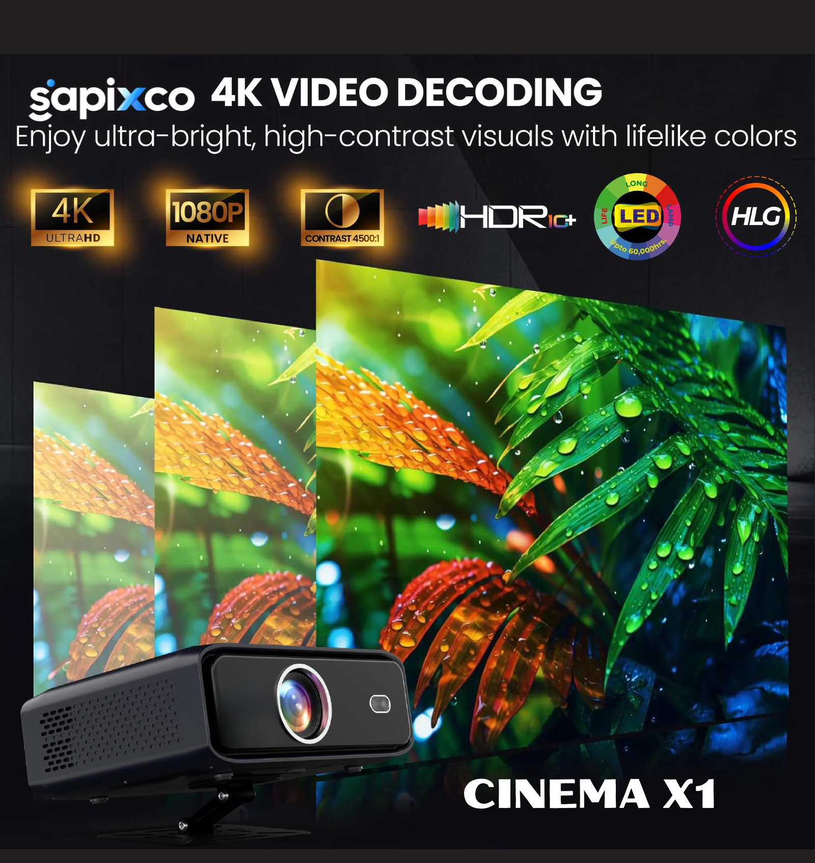 🏷️ SAPIXCO VISION 4X Dust-Free Smart Projector | Native 1080P Full HD + 4K HDR Support | Auto Focus & Auto Keystone | Wi-Fi 6 & Bluetooth | Android Smart Features | Portable Tabletop Projector