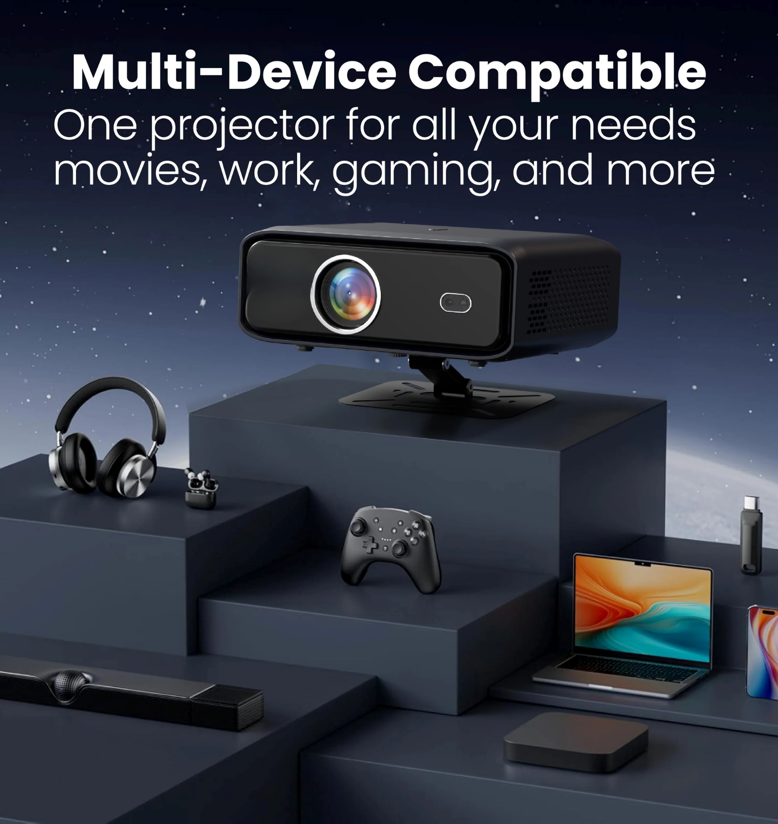 ✔ Native Full HD 1080P Resolution + 4K HDR Support – True 1920×1080 Full HD display with 4K HDR decoding for crisp, detailed visuals.